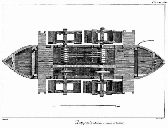 où l'on voit deux crochets qui entrent dans les trous d'une pièce a, fixée à l'extérieur des murailles, figure 3. Fig. 7. palette de bois avec ses gonds. Fig. 8. fiche qui reçoit un gond de la palette. Fig. 9. la charnière qui unit les jumelles des deux...