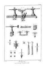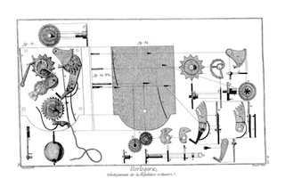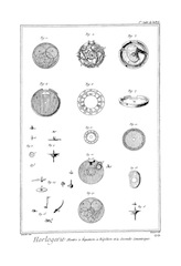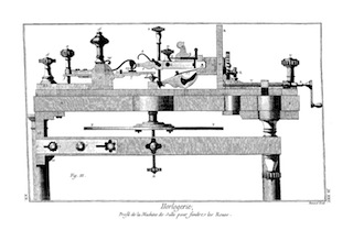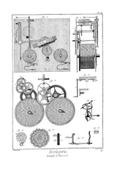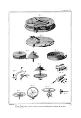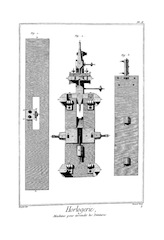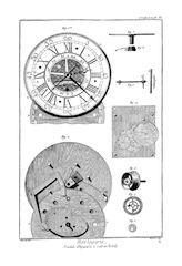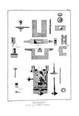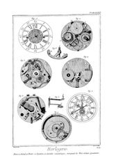 On a ainsi enrichi l'Horlogerie d'un grand nombre d'inventions qu'il serait trop long de rapporter ici ; on peut consulter les ouvrages d'Horlogerie, comme le traité de M. Thiout, du P. Alexandre, et de le Paute ; on trouvera surtout dans le livre de M. Thiout un grand nombre de machines très-ingénieusement imaginées pour parvenir à exécuter aisément toutes les parties qui composent la main-d'œuvre ; il y a d'ailleurs toutes sortes de pièces : cet ouvrage est proprement un recueil des machines d'Horlogerie.
