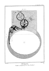 Le pendule circulaire, que l'on appelle pirouette, est encore de l'invention de M. Huygens. Ce pendule au lieu de faire ses oscillations dans un même plan, décrit au contraire un cone ; et tourne toujours du même côté, y étant obligé par l'action des roues. Ce pendule est tellement composé qu'il peut parcourir de plus grands ou de plus petits arcs, selon que la force motrice agit plus ou moins, en sorte que les tours que ce pendule trace dans l'air, ont des bases plus grandes ou plus petites, selon l'inégalité de la force motrice ; mais quoique le pendule décrive ainsi des cones inégaux, cela ne change point les temps des revolutions du pendule ; car, soit que la force motrice soit faible, et que la force centrifuge du pendule lui fasse décrire un petit cône, ou soit que la force motrice venant à augmenter, la force centrifuge du pendule lui fasse alors parcourir un plus grand cercle, le temps des révolutions est toujours le même ; ce qui dépend de la propriété d'une certaine courbe, sur laquelle s'applique le fil qui porte le pendule. Cet isochronisme des révolutions du pendule est fondé sur une théorie qui m'a toujours paru admirable, ainsi que celle de la cycloïde ; et quoique l'on ne fasse usage de l'une ni de l'autre méthode, on ne doit pas moins essayer d'en suivre l'esprit dans les machines qui mesurent le temps, toute leur justesse ne pouvant être fondée que sur l'isochronisme des vibrations du régulateur quel qu'il soit : ces inventions furent contestées à Huygens, comme il le dit lui-même au commencement de son livre intitulé, de horlogio oscillatorio. Je rapporterai ses propres paroles.
