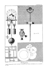 On peut juger de la perfection où on aporté la construction et l'exécution des pendules astronomiques, par ce qu'elles étaient lorsque Huygens les imagina. Les premières horloges à pendule qui furent faites sur ces principes allaient 30 heures avec un poids de six livres, dont la descente était de cinq pieds ; et je viens d'en terminer une qui Ve un an avec un poids qui pese deux livres, et dont la descente est de cinq pieds.