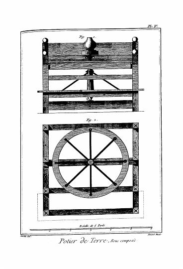 L'arçonneur A tient de la main gauche, et le bras étendu, la perche de l'arçon qui est suspendu horizontalement par la corde D E qui tient au plancher ; en sorte que la corde de boyau de l'arçon soit presque dans le même plan horizontal que la perche. De la main droite il tient la coche F représentée séparément (figure 10, Planche du Chapelier.) avec le bouton de laquelle il tire à lui la corde de boyau qui échappe en glissant sur la rondeur du bouton, et Ve frapper avec la force élastique que la tension lui donne, sur le poil ou la laine précédemment cardée, placée en G ; ce qui la divise et la fait passer par petites parties de la gauche de l'ouvrier à sa droite ; ce qu'on appelle faire voguer. On répète cette opération jusqu'à ce que le poil ou la laine soient suffisamment arçonnés ; pour cela on la rassemble sur la claie avec le clayon. Voyez CLAYON, et la figure 7 qui le représente. On conçoit bien comment la corde de boyau venant à échapper du bouton de la coche, doit pousser l'étoffe que l'on veut arçonner de droite à gauche : mais on n'entend pas de même pourquoi au contraire elle passe de la gauche à la droite de l'ouvrier : c'est ce qu'on Ve expliquer. Sait la ligne droite A B (Pl. I. de Chapel.) la corde dans son état naturel, c'est-à-dire en repos, D la coche, C le poil ou laine qu'il faut arçonner ; si on conçoit que la corde tirée par la coche au point b parvient en D, où elle cesse d'être retenue par le bouton de la coche, elle retournera contrainte par la force élastique au point de repos b, où elle ne s'arrêtera pas ; la vitesse acquise la fera aller au-delà comme en C, où elle frappera contre l'étoffe C, qui est en quantité considérable de ce côté ; elle s'y enfoncera jusqu'à ce que sa vitesse soit anéantie ; elle reviendra ensuite de C en b avec la même vitesse que celle qui la fait aller de b en C ; elle entraînera à son retour la petite quantité de poil ou de laine m, que le mouvement communiqué à la masse totale de poils par le premier choc, a fait élever sur son passage. Ainsi ces poils passeront de la gauche à la droite de l'ouvrier, ainsi qu'on l'observe.