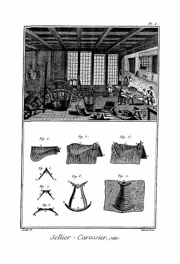 Le corroyeur étend, abat le grain de fleur, ou décrasse ses cuirs à l'estire.