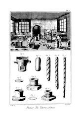 Ces diverses sortes d'ouvrages donnent le nom à deux communautés de Paris ; l'une est la communauté des maîtres potiers d'étain, dont on Ve parler ; et l'autre celle des maîtres potiers de terre, dont on parlera ensuite.