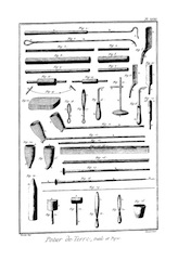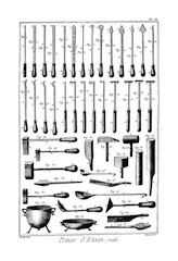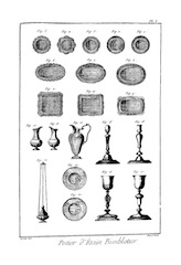 Le chef-d'œuvre consiste à faire ; savoir, par le Potier rond, un pot dont le corps doit être tout d'une pièce ; pour celui qui veut être passé maître de forge, une jatte et un plat au marteau d'une rouelle ; par le menuisier (c'est-à-dire par celui qui veut se fixer aux menus ouvrages et pièces de rapport) une écritoire.