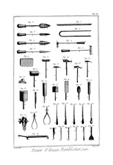 Tout potier-d'étain est tenu d'avoir son poinçon ou marques particulières pour appliquer sur ses ouvrages, et ces marques doivent être empreintes ou insculpées sur les tables ou rouelles d'essai qui sont dans la chambre du procureur du roi du châtelet, et dans celle de la communauté des maîtres Potiers-d'étain.