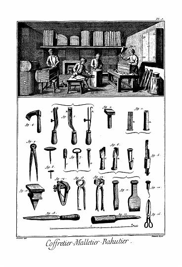 DOLER, en terme de Tabletier-Cornetier, n'est autre chose qu'ébaucher à la hache ou à la serpe des cornes d'animaux, pour en faire des cornets à jouer aux dés, au trictrac, etc.