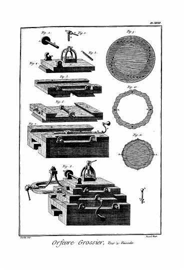 Le rame, les arcades, et le corps, sont attachés pour la petite tire, comme dans les autres métiers. La différence qu'il y a, c'est que le nombre n'en est pas si considérable, et qu'on ne passe pas cinquante cordes ; il s'en est fait cependant qui allaient à deux cent cordes ; mais dans ce cas le semple est aussi bon ; ce qui fait qu'il faut autant d'arcades qu'on veut mettre des mailles de corps ; à deux mailles pour une arcade, la déduction en est considérable, puisqu'elle a été portée jusqu'à 3200 mailles, mais les plus ordinaires sont de 1600 et 2400. On comprend de-là, par ce qui a été dit des satins réduits, combien cette étoffe est délicate et belle quand elle est travaillée comme il faut.